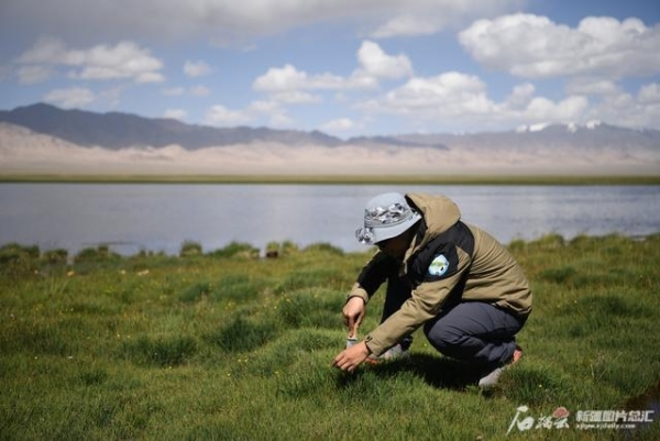 科考團(tuán)隊(duì)負(fù)責(zé)人張發(fā)起正在采集植物標(biāo)本。中國(guó)科學(xué)院西北高原生物研究所提供