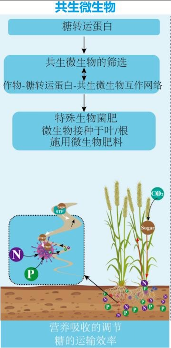 首先,增強(qiáng)糖轉(zhuǎn)運(yùn)蛋白與共生微生物的相互作用是提高作物產(chǎn)量的重要策略之一。互惠微生物宛如一群微小卻神通廣大的“精靈”,與植物締結(jié)了緊密且精妙的共生契約。互惠微生物可以為植物提供更多的營(yíng)養(yǎng)物質(zhì)如氮、磷、鉀;植物則為微生物提供更多的糖分,二者互利共贏。糖轉(zhuǎn)運(yùn)蛋白就像互惠微生物的“補(bǔ)給車”,負(fù)責(zé)它的能量補(bǔ)給。通過(guò)這一策略,可以幫助植物更好地吸收土壤中的養(yǎng)分,比如磷和氮。這就像給植物吃了“營(yíng)養(yǎng)補(bǔ)品”,讓它們長(zhǎng)得更壯實(shí)。