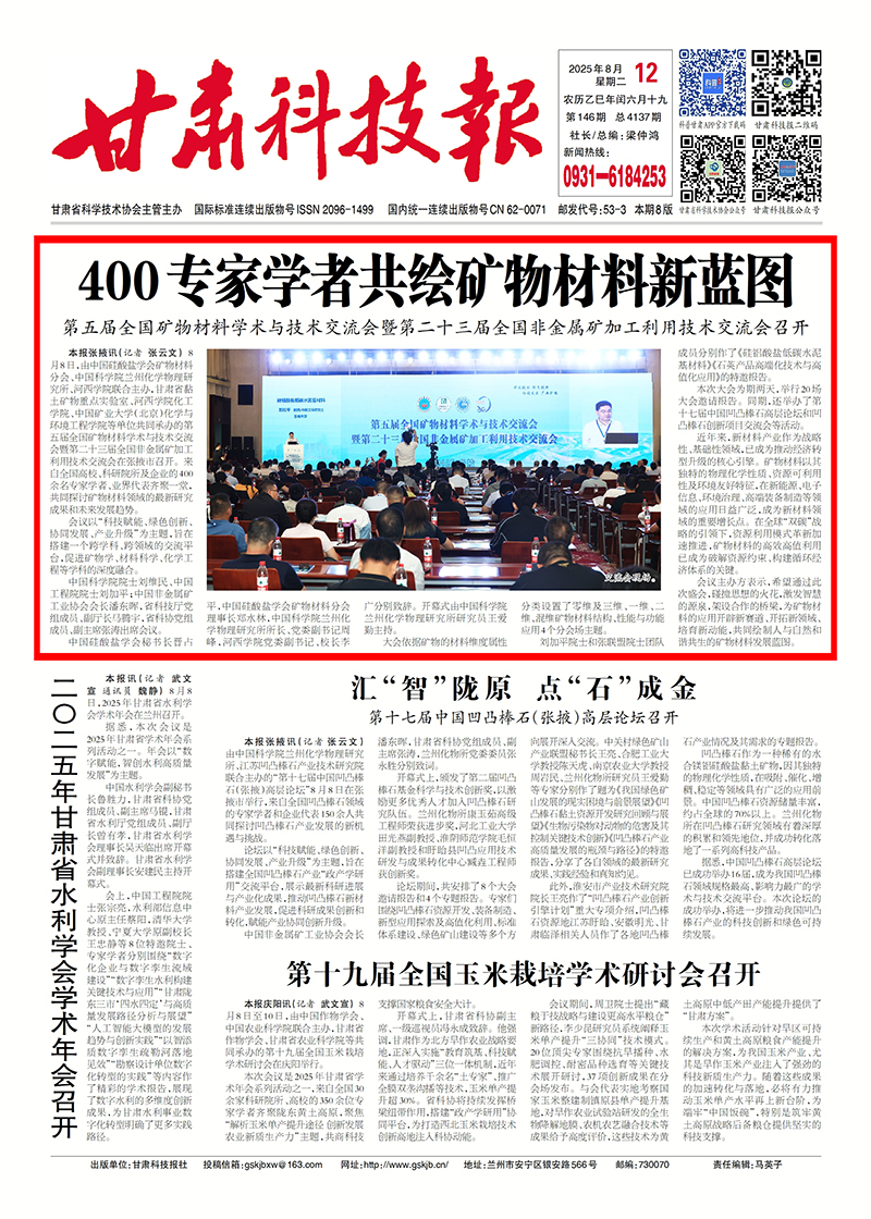【甘肅科技報(bào)】第五屆全國(guó)礦物材料學(xué)術(shù)與技術(shù)交流會(huì)召開(kāi) 400專家學(xué)者共繪礦物材料新藍(lán)圖