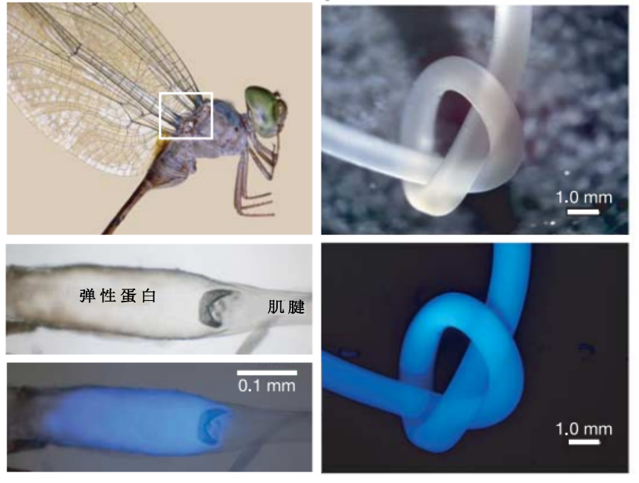蜻蜓翅膀肌腱中彈性蛋白的熒光顯微鏡拍攝