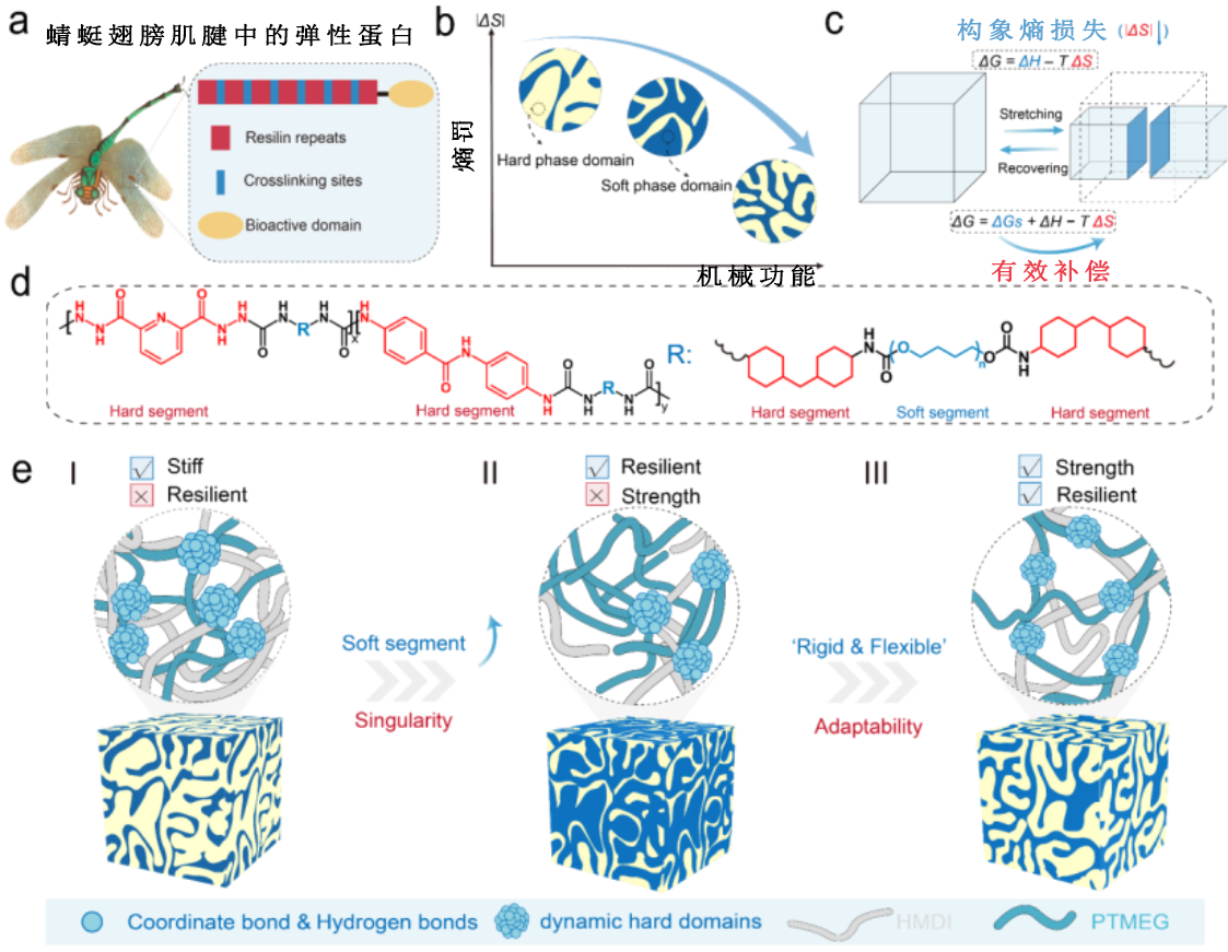 受蜻蜓角質(zhì)層中彈性蛋白啟發(fā)的可調(diào)聚氨酯彈性體設(shè)計(jì)制備示意圖