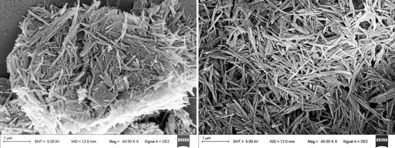 凹凸棒石原礦和棒晶束解離后的掃描電鏡照片(圖片來源:參考文獻(xiàn)[8])