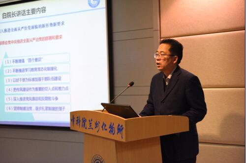 會上,黨委書記、副所長王齊華傳達(dá)學(xué)習(xí)了2017年中科院黨建暨黨風(fēng)廉政建設(shè)工作會議精神,對中科院院長、黨組書記白春禮,中科院黨組副書記、副院長劉偉平以及中央紀(jì)委駐院紀(jì)檢組組長李志剛在院2017年黨建暨黨風(fēng)廉政建設(shè)工作會議上講話精神進(jìn)行了詳細(xì)解讀,并組織與會人員認(rèn)真學(xué)習(xí)了《中科院黨組貫徹<中國共產(chǎn)黨問責(zé)條例>實(shí)施辦法》、《中國科學(xué)院黨的建設(shè)工作領(lǐng)導(dǎo)小組2017年工作要點(diǎn)》及《中國科學(xué)院2017年黨風(fēng)廉政建設(shè)和反腐敗工作要點(diǎn)》。