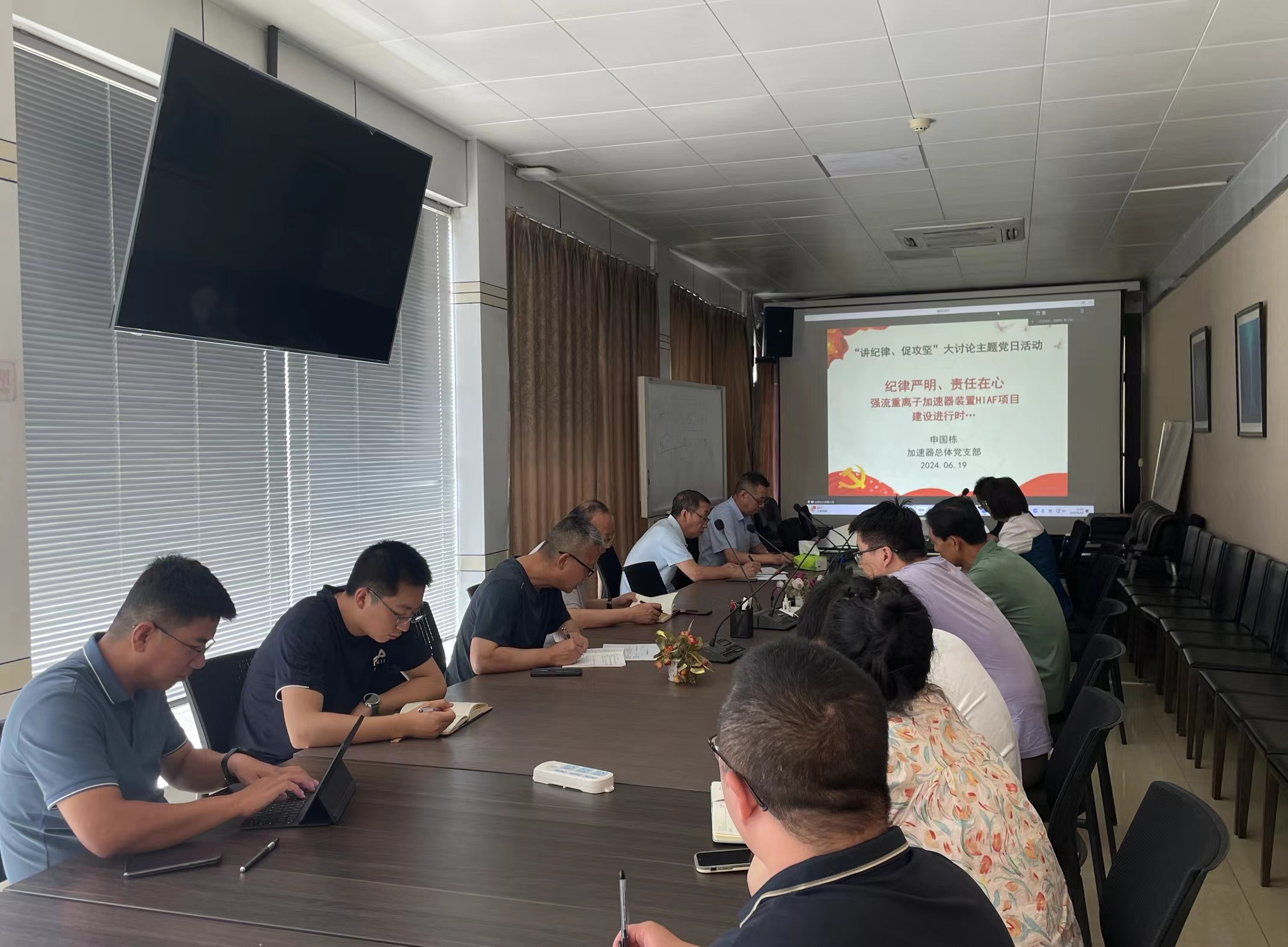 為進(jìn)一步深化黨紀(jì)學(xué)習(xí)教育,6月19日,中國科學(xué)院近代物理研究所加速器總體黨支部開展了“講紀(jì)律、促攻堅(jiān)”大討論,申國棟同志結(jié)合國家重大科技基礎(chǔ)設(shè)施——強(qiáng)流重離子加速器裝置HIAF的設(shè)備現(xiàn)場安裝工作展開了《紀(jì)律嚴(yán)明、責(zé)任在心——強(qiáng)流重離子加速器裝置HIAF建設(shè)進(jìn)行時(shí)》主題匯報(bào)。