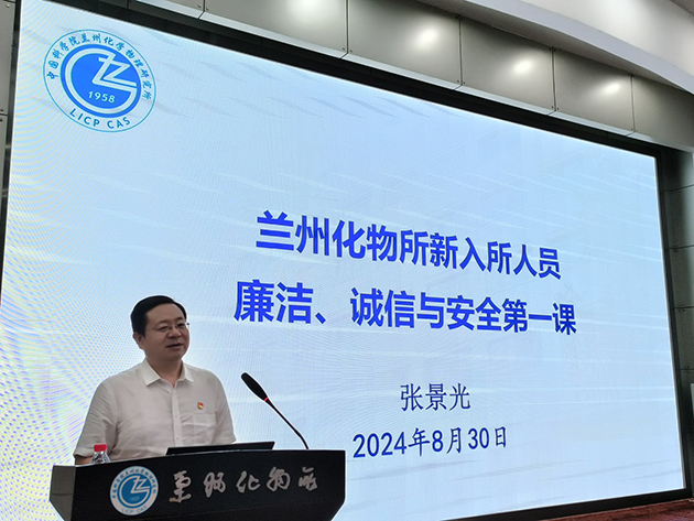 8月30日,中國科學院蘭州化學物理研究所開展2024年新入所職工和研究生教育活動,紀委書記張景光為新入所人員講授“廉潔、誠信與安全第一課”。
