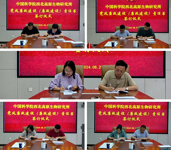 為貫徹落實黨中央、中國科學院黨組關于黨風廉政建設責任制的工作部署和要求,明確領導班子及其成員、各部門負責人、學科團組組長、關鍵崗位人員在黨風廉政建設中的責任,加強全所黨風廉政建設,8月29日上午,中國科學院西北高原生物研究所舉行《黨風廉政建設(廉政建設)責任書》(以下簡稱“責任書”)簽訂儀式,會議由黨委副書記王萍主持。