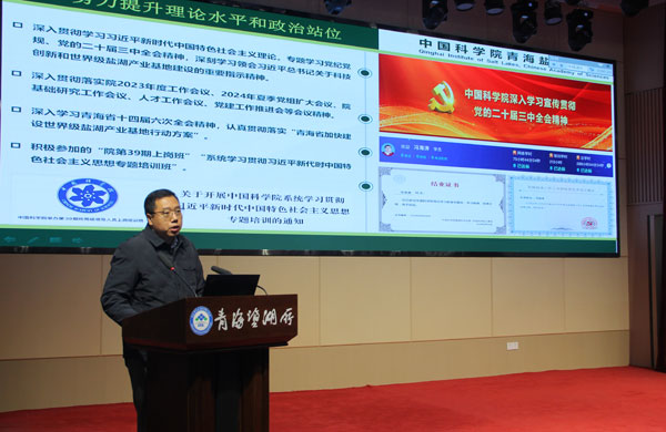 中國科學院蘭州分院副院長、分黨組成員趙培慶,蘭州分院組織人事教育處相關(guān)工作人員,青海鹽湖所領(lǐng)導班子成員及全所職工等220余人參加了會議。會議由青海鹽湖所副所長鄭詩禮(主持工作)主持。?