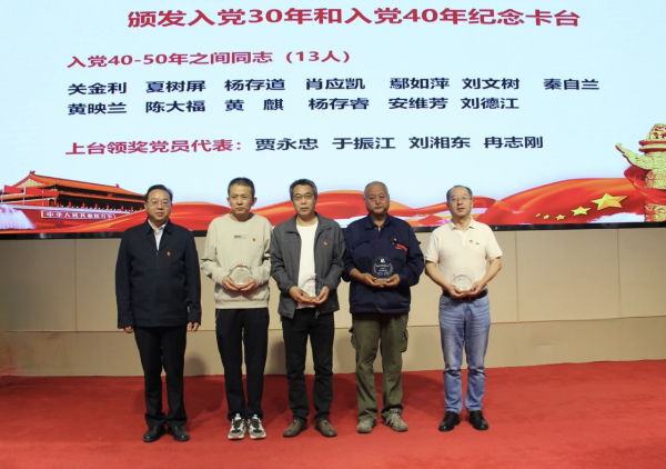 會議宣讀了“光榮在黨50年”紀念章獲得者名單,所黨委委托西安二部黨支部開展紀念章頒發(fā)活動。會議頒發(fā)了入黨30年和入黨40年紀念卡臺,全所28名在冊黨員獲得入黨30年紀念卡臺,13名在冊黨員獲得入黨40年紀念卡臺。通過頒發(fā)活動激勵全所黨員同志進一步強化黨員身份認同,時刻牢記入黨初心使命,永葆先進本色,在新時代新征程上接續(xù)奮斗,再現(xiàn)新?lián)?dāng)、新作為。