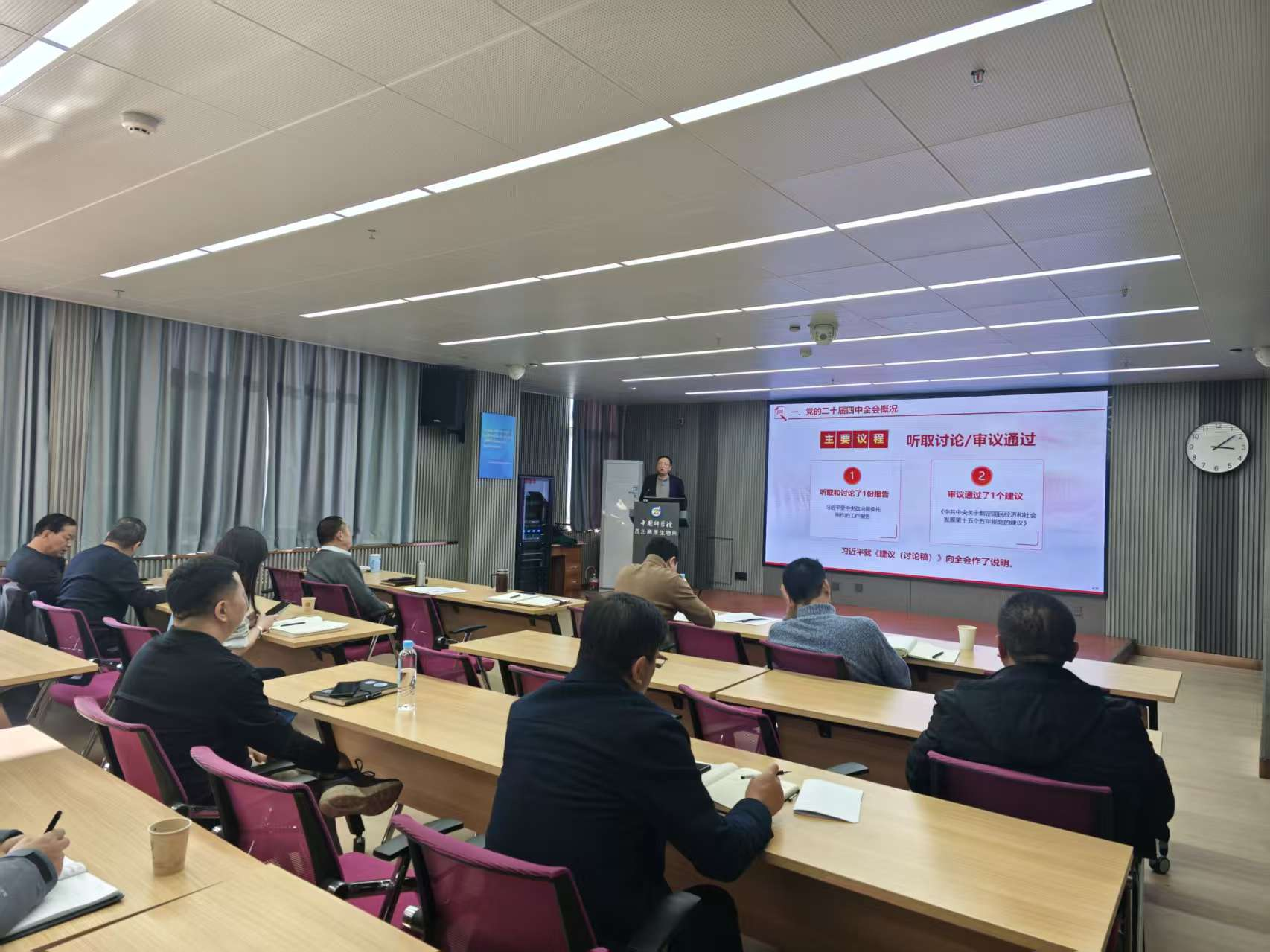11月27日下午,中國(guó)科學(xué)院西北高原生物研究所召開黨委理論學(xué)習(xí)中心組第六次(擴(kuò)大)會(huì)議,會(huì)議主題是傳達(dá)學(xué)習(xí)習(xí)近平總書記在黨的二十屆四中全會(huì)上的重要講話和全會(huì)精神,研究學(xué)習(xí)宣傳和貫徹落實(shí)的思路舉措等。會(huì)議由所長(zhǎng)、黨委書記陳世龍主持,黨委理論學(xué)習(xí)中心組成員參加會(huì)議。