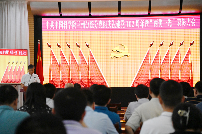為慶祝中國共產(chǎn)黨成立102周年,深入開展學(xué)習(xí)貫徹習(xí)近平新時(shí)代中國特色社會(huì)主義思想主題教育,中共中國科學(xué)院蘭州分院分黨組、中共中國科學(xué)院蘭州分院系統(tǒng)單位委員會(huì)于6月26日召開慶祝中國共產(chǎn)黨成立102周年暨“兩優(yōu)一先”表彰大會(huì)。分黨組、系統(tǒng)單位黨委領(lǐng)導(dǎo)班子成員,蘭州、西寧地區(qū)院屬各單位黨委領(lǐng)導(dǎo)同志、黨辦主任,分院機(jī)關(guān)高級業(yè)務(wù)主管四級職員、各部門負(fù)責(zé)人、各黨支部(總支)書記以及受表彰的“兩優(yōu)一先”人員參加會(huì)議。會(huì)議由蘭州分院分黨組副書記、系統(tǒng)單位黨委副書記陳改學(xué)主持。