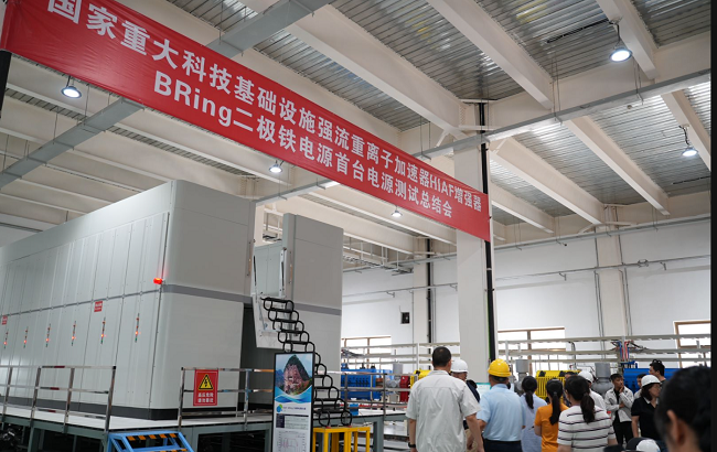 7月7日,國(guó)家重大科技基礎(chǔ)設(shè)施強(qiáng)流重離子加速器增強(qiáng)器 BRing 二極鐵電源首臺(tái)暨國(guó)家重點(diǎn)研發(fā)計(jì)劃“大科學(xué)裝置前沿研究”非諧振快上升速率磁鐵電源測(cè)試總結(jié)會(huì)在甘肅省天水市召開。由中國(guó)科學(xué)院近代物理研究所設(shè)計(jì)、天水電氣傳動(dòng)研究所和四川英杰電氣有限公司為主生產(chǎn)的國(guó)際首臺(tái)大型非諧振全儲(chǔ)能快循環(huán)脈沖電源通過專家組現(xiàn)場(chǎng)測(cè)試。