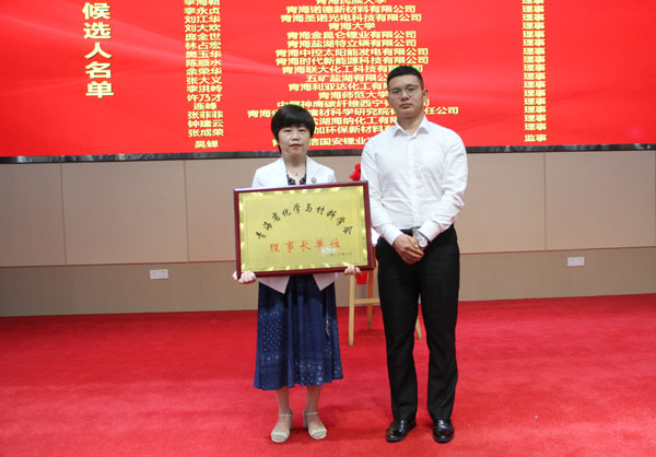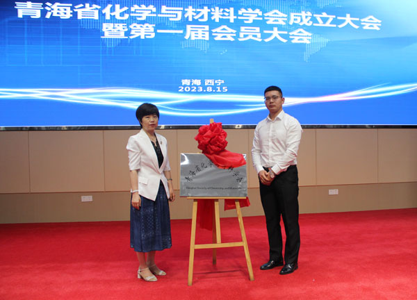 嚴(yán)貴成與王敏為青海省化學(xué)與材料學(xué)會揭牌