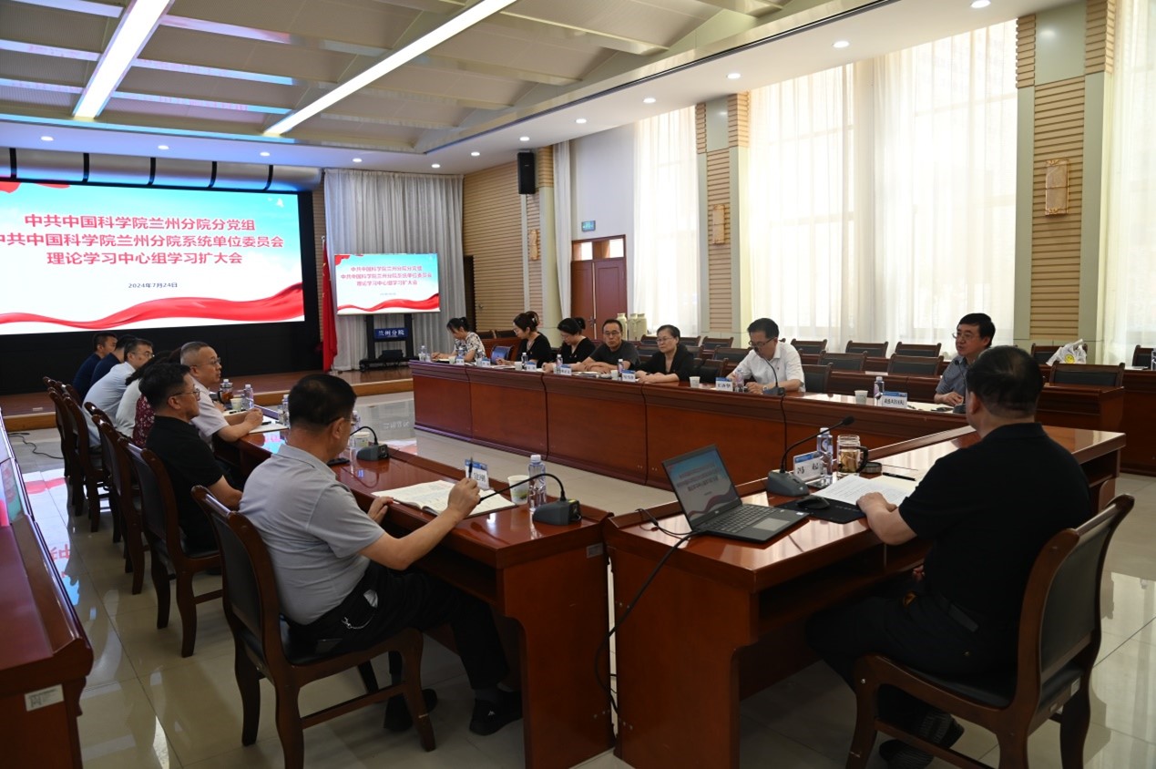 7月24日下午,中國科學(xué)院蘭州分院分黨組、蘭州分院系統(tǒng)單位黨委召開理論學(xué)習(xí)中心組學(xué)習(xí)擴(kuò)大會議,傳達(dá)學(xué)習(xí)黨的二十屆三中全會精神。會議由蘭州分院分黨組書記、院長馮起主持,蘭州分院分黨組成員、系統(tǒng)單位黨委委員、分院機(jī)關(guān)黨委委員、高級業(yè)務(wù)主管四級職員,各部門負(fù)責(zé)人參加會議。