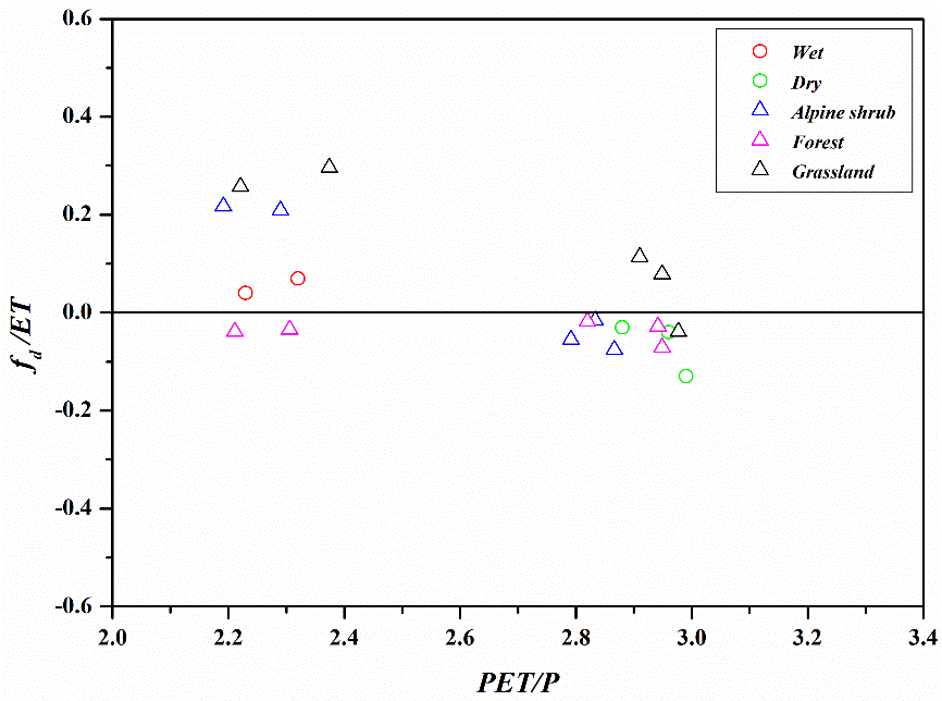 圖3 基巖風(fēng)化層的垂直通量(fd)對蒸散發(fā)(ET)的貢獻(xiàn)。雨季(2017年、2019年)和旱季(2018年、2020年、2021年)。