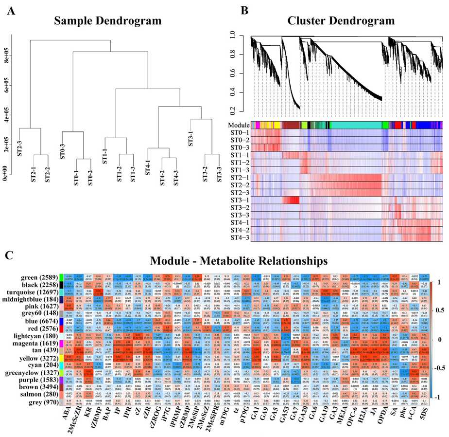 不同層積階段加權(quán)基因共表達(dá)網(wǎng)絡(luò)分析