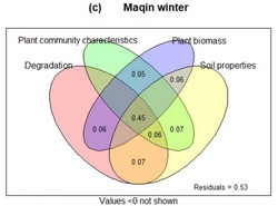 達日冬季草場(a)、瑪沁夏季草場(b)及瑪沁冬季草場(c)高寒草甸土壤微生物碳氮磷含量及其化學(xué)計量比的方差分解分析