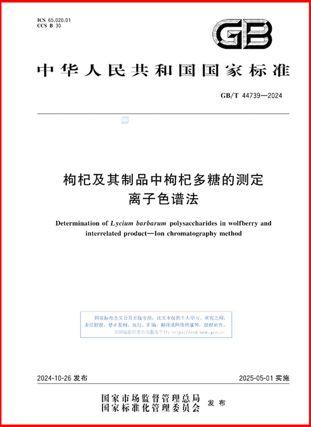 蘭州化物所牽頭制訂的國家標準《枸杞及其制品中枸杞多糖的測定 離子色譜法》獲批發(fā)布