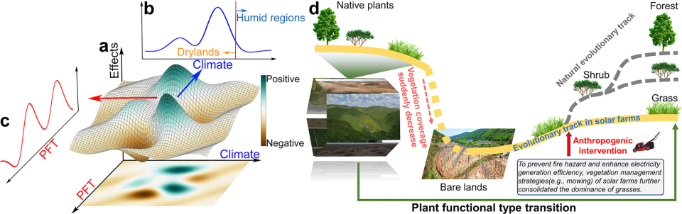 相關成果Diverse vegetation responses to solar farm installation are also driven by climate change發(fā)表于Nature旗下刊物Communications Earth & Environment。西北研究院博士研究生吳川東為論文第一作者,劉鵠副研究員為通訊作者。該研究由國家自然科學基金、甘肅省拔尖人才項目和土耳其科學技術研究理事會杰出人才項目共同資助。