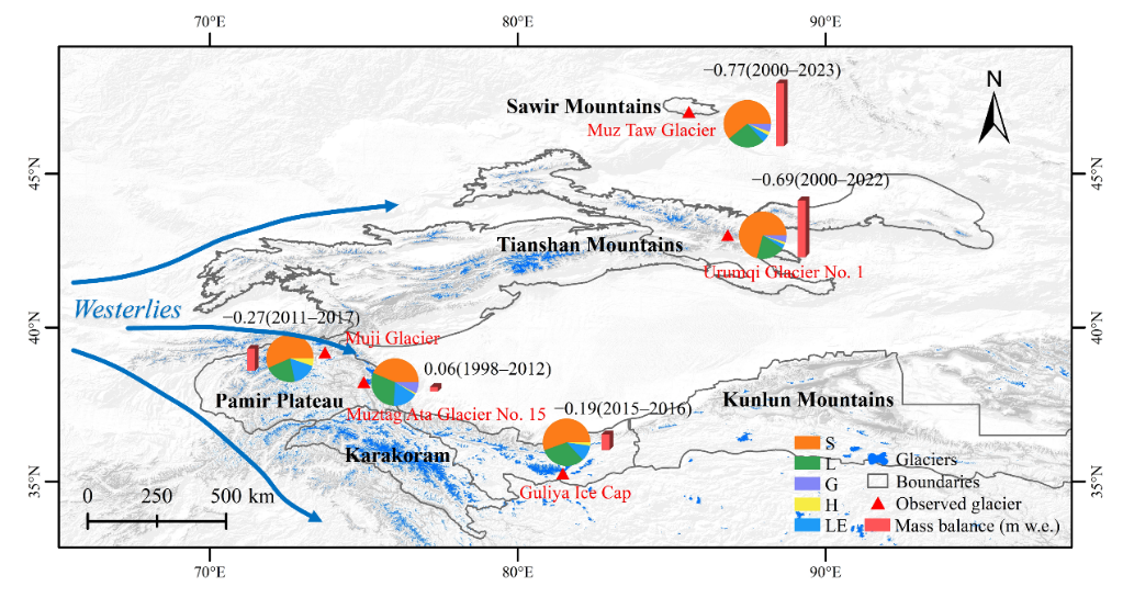 該研究成果以Mass balance reconstruction of a reference glacier in central Asia during 2000–2023: Integrating simulation and in-situ measurements為題發(fā)表于氣候變化領(lǐng)域權(quán)威期刊Advances in Climate Change Research。西北研究院王璞玉研究員為論文第一作者和通訊作者。該研究得到國家自然科學(xué)基金、中國科學(xué)院青促會優(yōu)秀會員項目、冰凍圈科學(xué)與凍土工程全國重點實驗室自主部署項目等聯(lián)合資助。