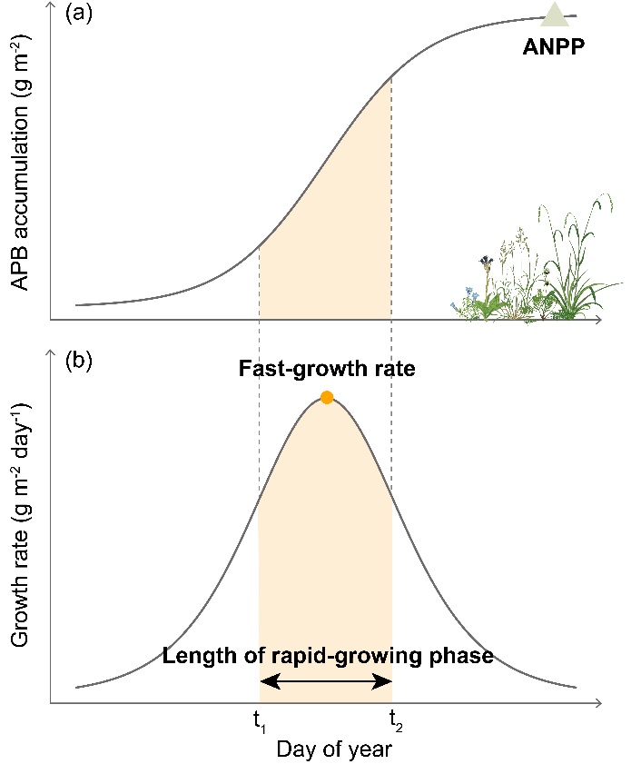 圖1 地上生物量積累與快速生長(zhǎng)期的概念示意圖