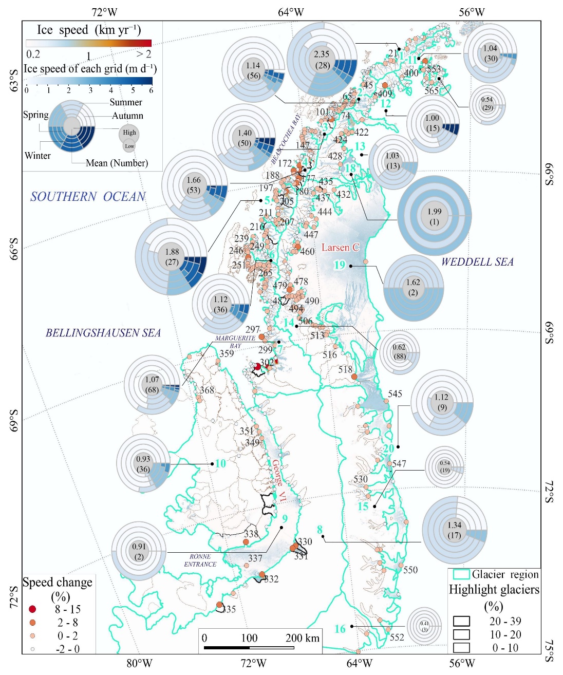 近年來南極半島冰川季節(jié)性流速研究獲新進展