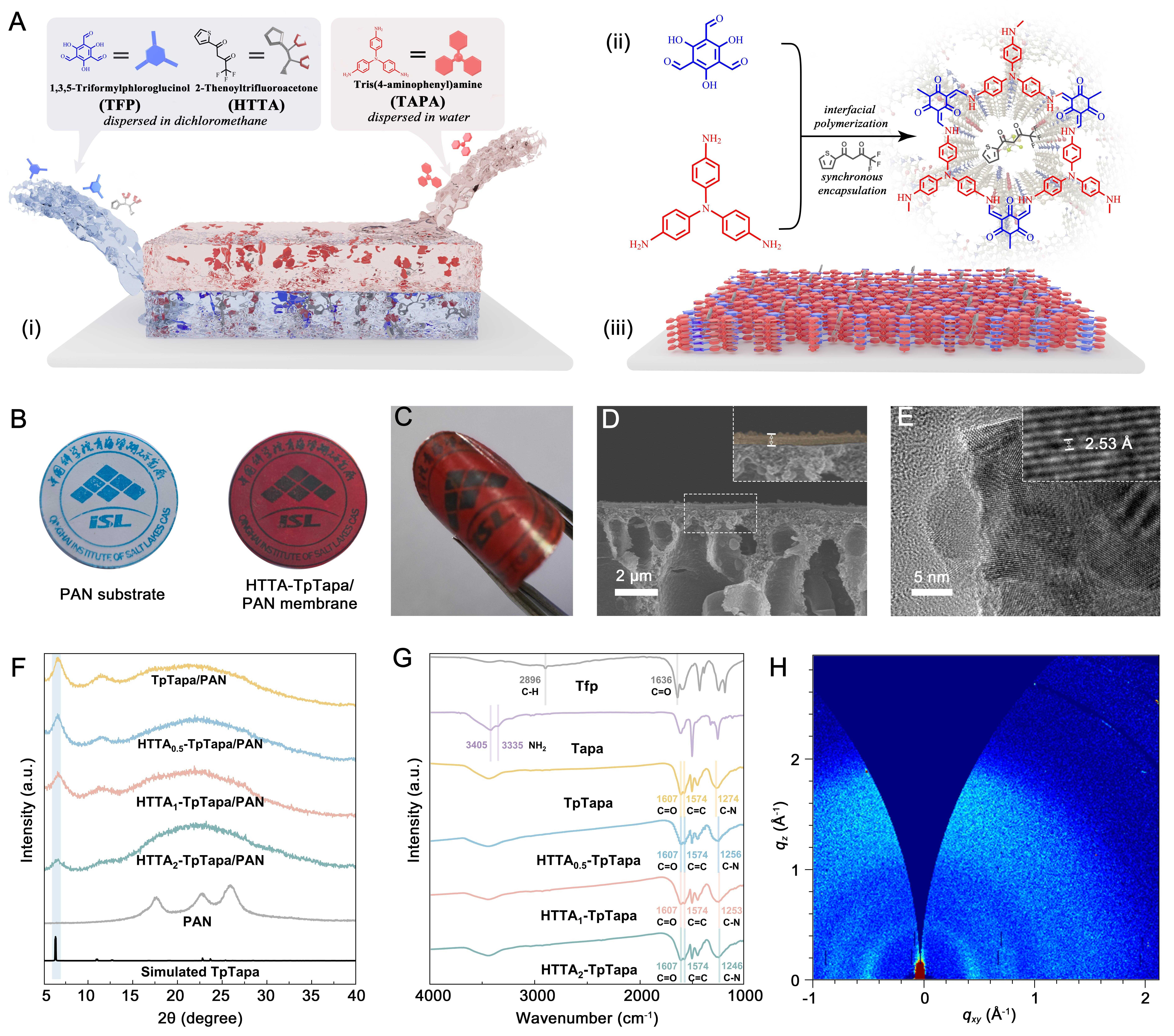 圖1:HTTAn-TpTapa/PAN膜的構(gòu)建及結(jié)構(gòu)表征