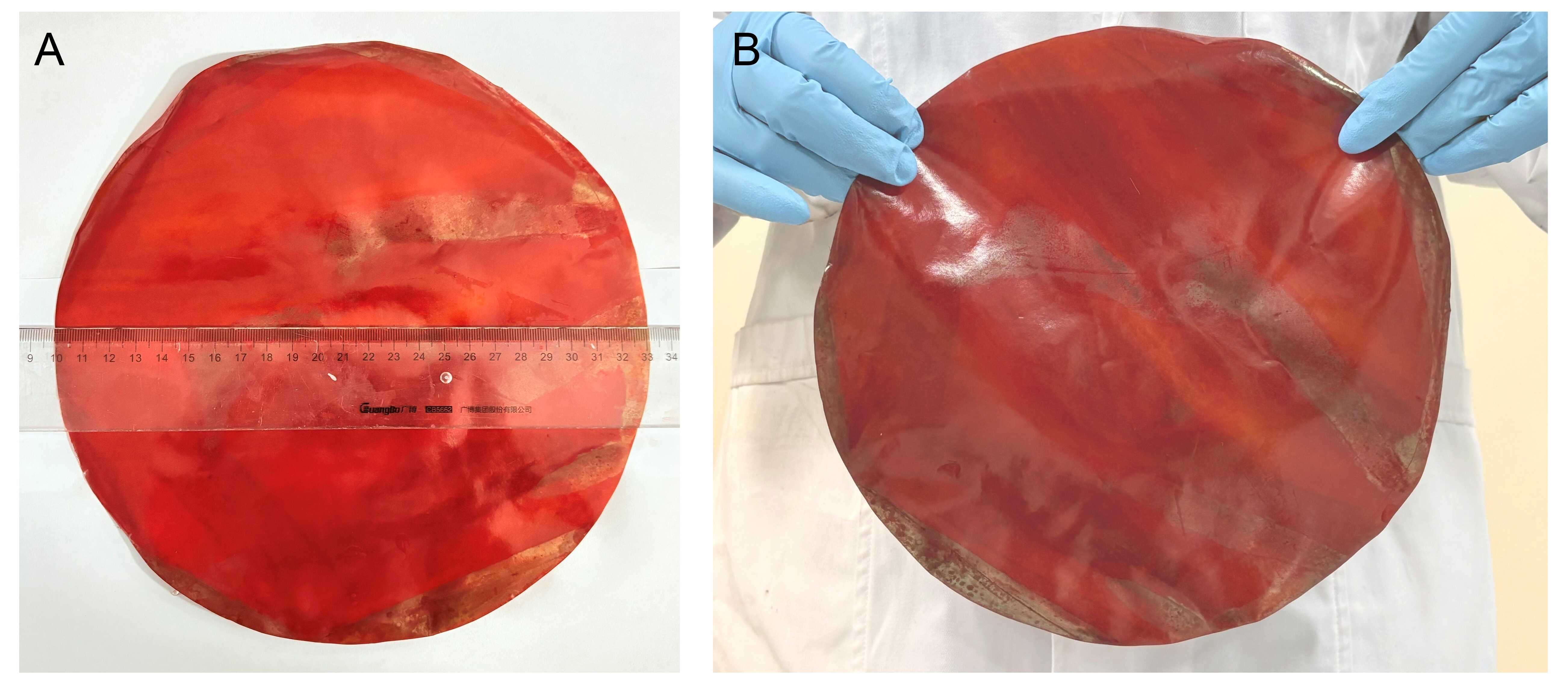 圖2:大尺寸離子分離膜實(shí)物照片(直徑可達(dá)23 cm)