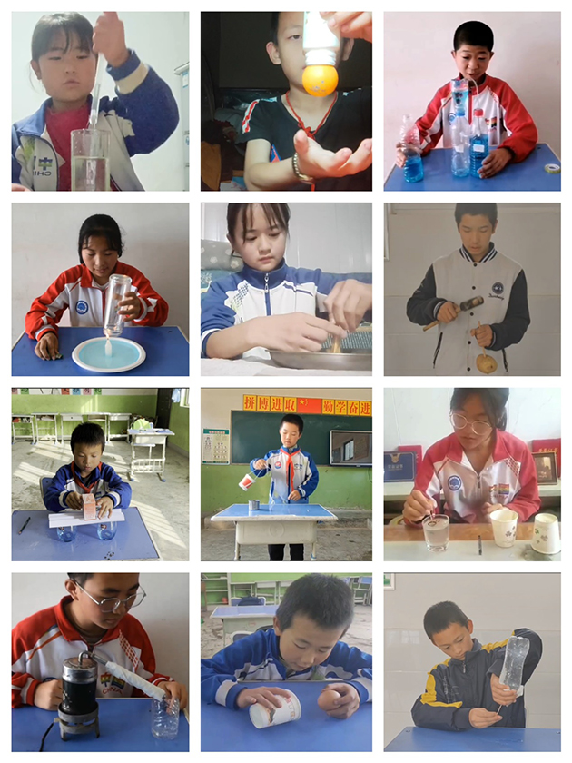 前期,研究所面向幫扶村師生組織了“向星·向未來(lái)”科學(xué)實(shí)驗(yàn)短視頻大賽,學(xué)校積極響應(yīng),學(xué)生踴躍參加,共提交46件作品,最終評(píng)選出30個(gè)優(yōu)秀獎(jiǎng)、10個(gè)參與獎(jiǎng)以及13名優(yōu)秀指導(dǎo)老師獎(jiǎng)。作品展現(xiàn)形式豐富多彩,涵蓋了摩擦學(xué)、慣性定律、大氣壓力、熱脹冷縮等生活中常見(jiàn)的原理及現(xiàn)象。