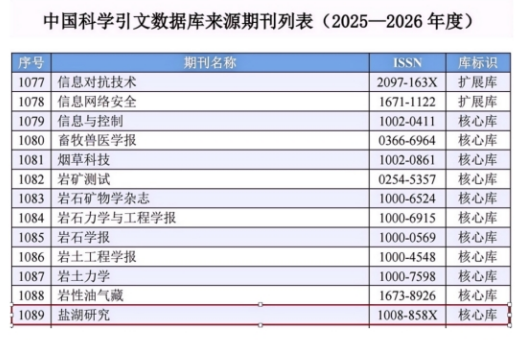《鹽湖研究》入選CSCD來源期刊核心庫