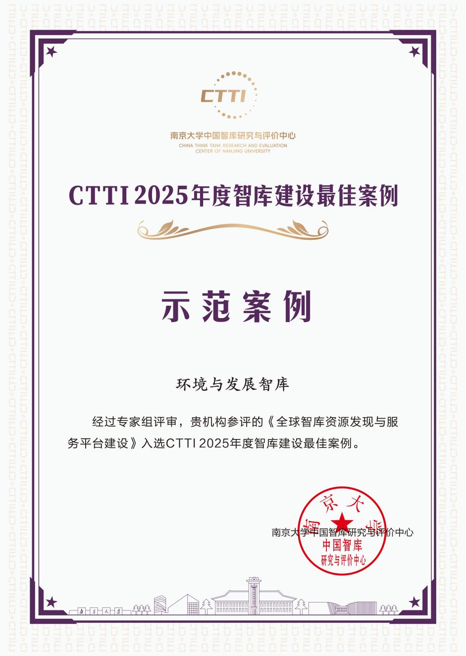 在近期舉辦的“2025新型智庫治理論壇”上,中國科學(xué)院西北生態(tài)環(huán)境資源研究院文獻情報中心環(huán)境與發(fā)展智庫報送的“全球智庫資源發(fā)現(xiàn)與服務(wù)平臺建設(shè)”成功入選中國智庫索引(CTTI)2025 年度智庫建設(shè)最佳案例 —— 示范案例,并憑借創(chuàng)新性的資源整合模式與落地的服務(wù)成效,成為智庫服務(wù)領(lǐng)域的典型標(biāo)桿。