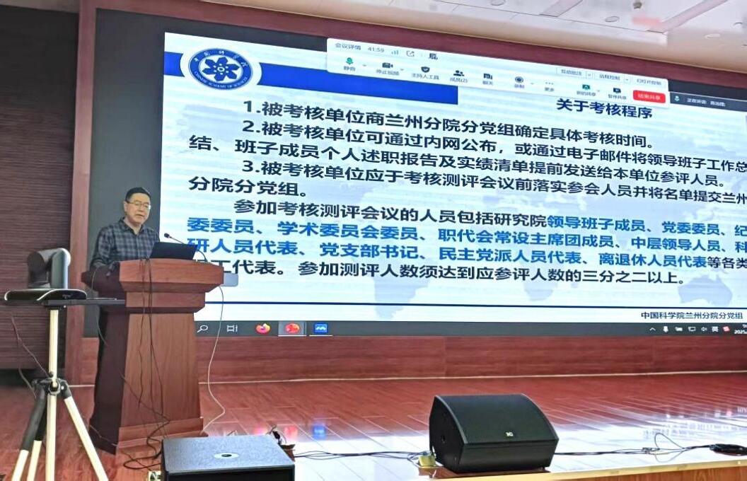 本次考核嚴(yán)格遵循規(guī)范流程,采取“班子匯報(bào)、民主測(cè)評(píng)、個(gè)別談話(huà)”相結(jié)合的方式進(jìn)行。吳建剛首先就考核工作的主要內(nèi)容與工作要求作出說(shuō)明。隨后,西北研究院領(lǐng)導(dǎo)班子與領(lǐng)導(dǎo)人員作年度工作報(bào)告。