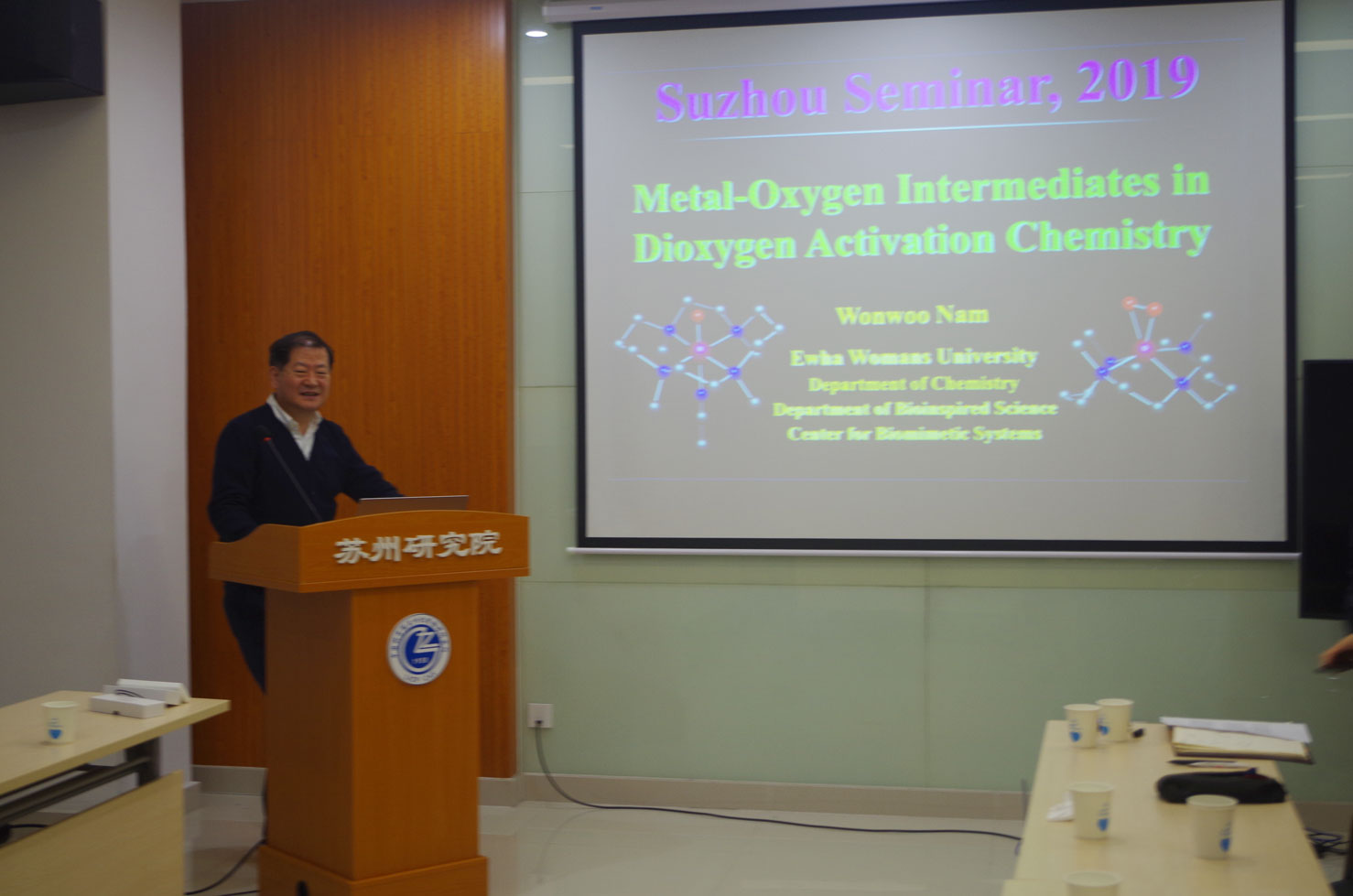 11月19日,中國(guó)科學(xué)院蘭州化學(xué)物理研究所羰基合成與選擇氧化國(guó)家重點(diǎn)實(shí)驗(yàn)室舉辦仿生化學(xué)與催化專題報(bào)告會(huì),邀請(qǐng)中國(guó)科學(xué)院化學(xué)研究所張純喜研究員、俄羅斯科學(xué)院Boreskov催化研究所Konstantin Bryliakov教授和韓國(guó)梨花女子大學(xué)Wonwoo Nam教授到蘭州化物所蘇州研究院,分別作了題為“Mimicking the Water-Splitting Catalytic Center in Photosynthesis”“Recent Advances in Ti and Mn Catalyzed Stereoselective Oxidations with H2O2”和“Biomimetic Metal-Oxygen Intermediates in Dioxygen Activation Chemistry”的學(xué)術(shù)報(bào)告。