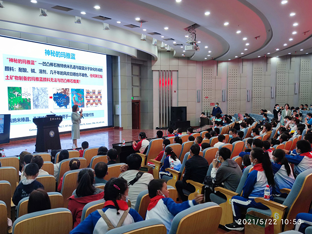 王馬山村中小學師生22日早6時半就從村里出發(fā),于蒙蒙細雨中驅車160公里趕赴蘭州,至上午10時到達蘭州化物所,研究所安排了包括科普報告、實驗室參觀、科學小實驗、化學互動游戲等一系列活動。