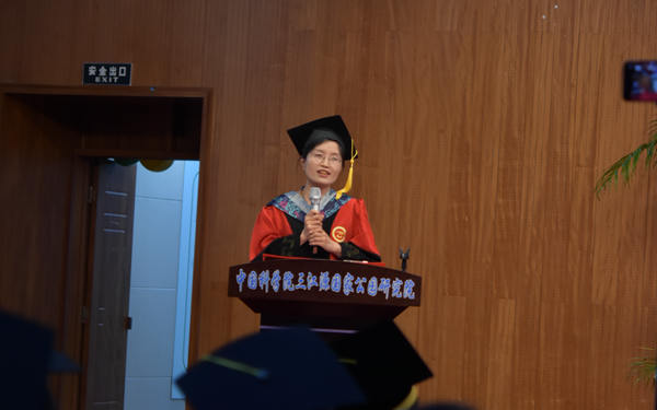 畢業(yè)典禮在莊嚴(yán)的國歌聲中拉開序幕。優(yōu)秀畢業(yè)生代表閆榮格博士首先發(fā)言。她代表全體畢業(yè)生懷著感恩的心和美好的希望,向培養(yǎng)他們的研究所和辛勤付出的導(dǎo)師們送上了最真摯的謝意和最美好的祝福。她說明年將是西高所建所60周年,在過去的數(shù)十年間,一批又一批科學(xué)家義無反顧地來到青海,扎根青海,克服困難,奉獻(xiàn)高原,為科學(xué)前沿、國家需求和地方發(fā)展做出了重大貢獻(xiàn),培養(yǎng)了一大批杰出的人才,很榮幸作為西高所的一份子,很榮幸,這里是大家的精神家園。在此出發(fā),胸懷夢(mèng)想不懈奮斗!