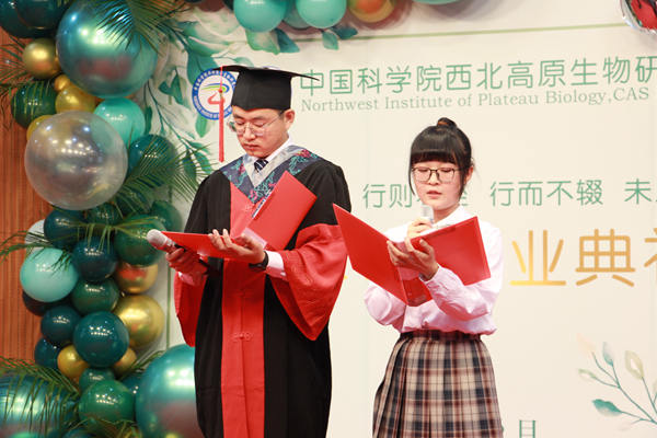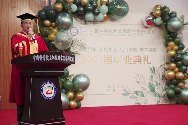 六月,綠意盎然,草長鶯飛;六月,畢業(yè)別離,青春留影;六月,新的征程,期待滿懷。6月16日下午,中國科學(xué)院西北高原生物研究所2021屆研究生畢業(yè)典禮在學(xué)術(shù)報(bào)告廳舉行。所長陳世龍、黨委書記張景光,副所長楊其恩,管理部門負(fù)責(zé)人、優(yōu)秀導(dǎo)師代表、2021屆全體畢業(yè)生及畢業(yè)生家長代表一同參加了典禮。畢業(yè)典禮由張景光主持。