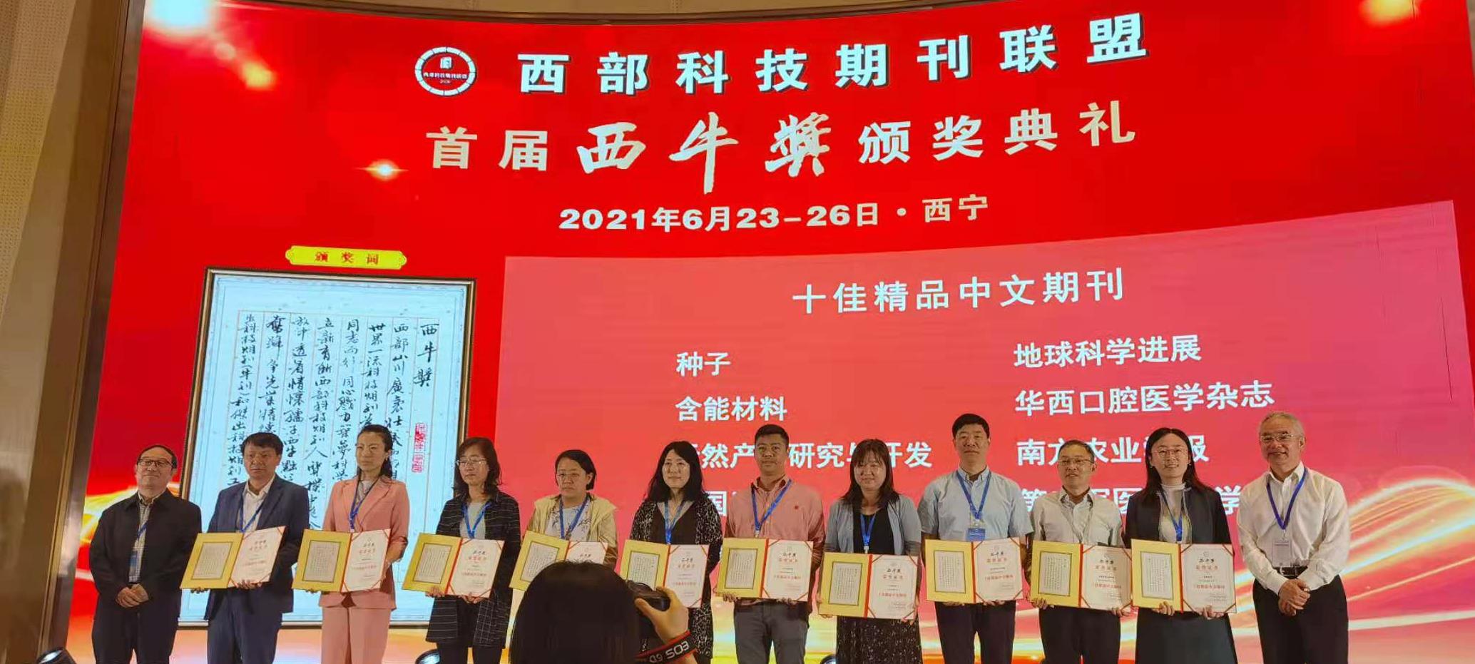 會上還舉行了由西部科技期刊聯(lián)盟評選的首屆西牛獎的頒獎典禮,共59家期刊、10個新媒體平臺、18個編輯團隊以及59位主編(社長)、編輯部主任、編輯獲獎。西北研究院主辦的《地球科學進展》獲“十佳精品中文期刊”,《中國沙漠》獲“十佳優(yōu)秀中文期刊”,Sciences in Cold and Arid Regions獲“十佳優(yōu)秀英文期刊”,《天然氣地球科學》編輯團隊、《黃金科學技術》學術出版團隊獲“十佳編輯團隊”,侯春梅被評為“十佳主編(社長)”,馬素萍被評為“十佳編輯部主任”,賀郝鈺、李小燕被評為“十佳編輯”,陶華被評為“十佳青年編輯”。