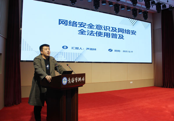 蘆翰林授課主題為《網(wǎng)絡(luò)安全意識(shí)及網(wǎng)絡(luò)安全法使用普及》,內(nèi)容分為三個(gè)部分。蘆翰林首先從日常生活入手,列舉了大家在日常生活中看似平常卻不同程度上存在網(wǎng)絡(luò)安全隱患的行為,如隨手丟棄快遞單據(jù)、使用免費(fèi)WIFI、共享充電樁、隨便處置舊手機(jī)、隨意掃描二維碼和使用弱口令等,講解了如何消除這些隱患的方法,尤其和大家分享了設(shè)置強(qiáng)密碼的技巧。第二部分以日常辦公中存在的網(wǎng)絡(luò)安全隱患為重點(diǎn)內(nèi)容,講解每個(gè)工作人員該如何保守工作秘密和內(nèi)部資料,提醒與會(huì)人員警惕微信辦公帶來(lái)的隱患。第三部分,從總則、網(wǎng)絡(luò)安全支持與促進(jìn)、網(wǎng)絡(luò)運(yùn)行安全、網(wǎng)絡(luò)信息安全、監(jiān)控預(yù)警與應(yīng)急處置、法律責(zé)任、附則七個(gè)方面普及了網(wǎng)絡(luò)安全法的內(nèi)容。這也是《中華人民共和國(guó)網(wǎng)絡(luò)安全法》自2017年6月1日施行以來(lái),首次在全所范圍內(nèi)開(kāi)展宣傳普及培訓(xùn)。