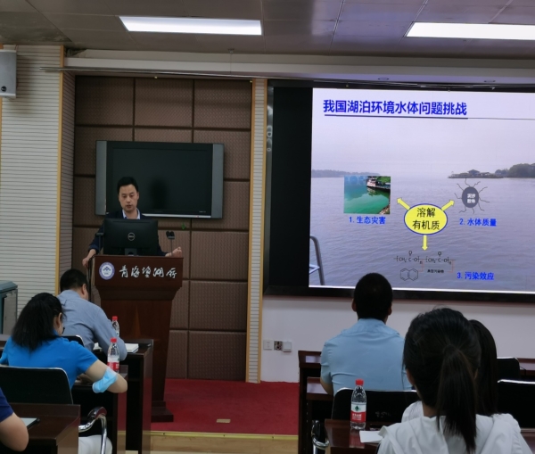 徐華成圍繞湖泊溶解性有機質這一主題,作了題為“湖泊環(huán)境水體中溶解性有機質及其行為效應”的學術報告。重點介紹了在我國湖泊水環(huán)境諸多問題的嚴峻挑戰(zhàn)下,湖泊有機質在水體中的環(huán)境行為和效應,并前瞻性地提出了湖泊水環(huán)境中溶解有機質未來的研究熱點和研究方向,同時為鹽湖資源開發(fā)的大背景下鹽湖溶解有機質的研究思路和內容提供指導。