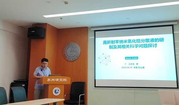 汪文龍研究員介紹了高折射率納米氧化鋯分散液的用途,其主要應(yīng)用在手機(jī)、電腦、電視等液晶顯示器的背光模組中,以增強(qiáng)其發(fā)光亮度和提高清晰度。系統(tǒng)介紹闡述了高折射率納米氧化鋯分散液的研究進(jìn)展,分享了其課題組在該領(lǐng)域課題的提出、材料的設(shè)計(jì)以、與企業(yè)的合作開(kāi)發(fā)交流,以及課題進(jìn)展中遇到的問(wèn)題和瓶頸。