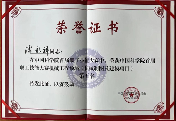 近代物理所通用技術中心機械準直技術室共4名職工(含1名領隊)參賽,其中陸海嬌同志參加了代表作展示比賽,榮獲第四名的優(yōu)異成績。潘永祥和楊振2名同志參加了線上的機械制圖和建模比賽,潘永祥榮獲第五名的優(yōu)異成績。