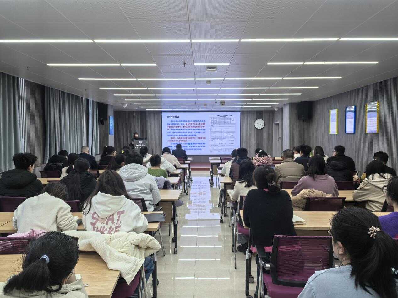之后,羅謹圍繞畢業(yè)生關(guān)心關(guān)注的問題作了專題報告。報告從畢業(yè)重要事項提醒、學生就業(yè)工作推進、學生安全提醒三個方面展開,為各位畢業(yè)生講解了達到畢業(yè)要求的必需條件、申請學位的各項要求、學生就業(yè)相關(guān)概念解讀、就業(yè)手續(xù)的辦理流程、常見的就業(yè)問題等,同時向大家作了人身財產(chǎn)安全、日常用火用電安全、出行安全、求職防詐騙、網(wǎng)絡(luò)防詐相關(guān)的安全提醒,請假手續(xù)辦理流程及相關(guān)注意事項提醒。