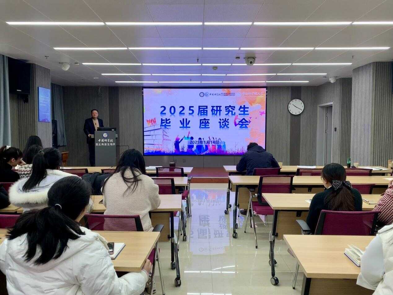1月14日上午,中國科學院西北高原生物研究所舉辦2025屆畢業(yè)研究生座談會,所長、黨委書記陳世龍,副所長楊其恩,人事教育處副處長楊紅霞出席會議,學生主管羅謹、2025屆畢業(yè)研究生共計60余人參會,會議由楊紅霞主持。