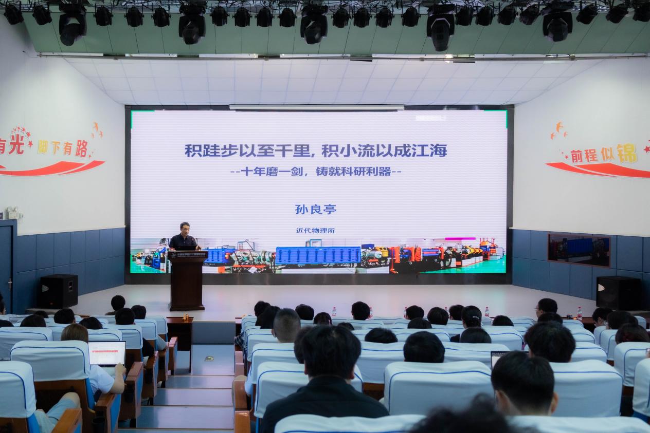 為深入貫徹落實(shí)習(xí)近平總書記關(guān)于弘揚(yáng)科學(xué)家精神和加強(qiáng)作風(fēng)學(xué)風(fēng)建設(shè)工作的重要指示精神,5月28日,中國科學(xué)院近代物理研究所開展“科學(xué)道德與學(xué)風(fēng)建設(shè)”主題日活動(dòng),邀請(qǐng)近代物理所黨委委員、低能粒子束技術(shù)中心主任孫良亭研究員作《積跬步以至千里,積小流以成江?!昴ヒ粍?,鑄就科研利器》主題報(bào)告。此次活動(dòng)共100余位研究生參加,近代物理所紀(jì)委書記宋華龍出席,教育處副處長魏巍主持。