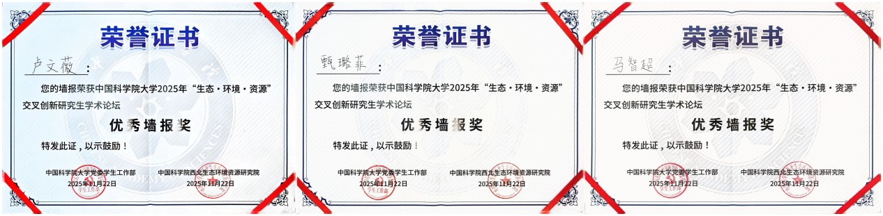 論壇設(shè)置“生態(tài)與環(huán)境領(lǐng)域組”“資源與工程領(lǐng)域組”及“弘揚(yáng)科學(xué)家精神與研究生思政教育管理研討組”三大專題板塊,聚焦國(guó)家戰(zhàn)略需求與科技前沿,推動(dòng)學(xué)科融合與協(xié)同創(chuàng)新。青海鹽湖所研究生緊扣青藏高原生態(tài)安全屏障、柴達(dá)木盆地資源高效利用與環(huán)境保護(hù)等關(guān)鍵科學(xué)問(wèn)題等多個(gè)方向進(jìn)行學(xué)術(shù)報(bào)告和墻報(bào)展示?,F(xiàn)場(chǎng)討論熱烈,學(xué)術(shù)氛圍濃厚。通過(guò)這一高水平平臺(tái),青海鹽湖所研究生不僅展示了最新的科研進(jìn)展,更與兄弟院所建立了深入的學(xué)術(shù)聯(lián)系,為后續(xù)合作奠定了良好基礎(chǔ)。參會(huì)研究生們憑借出色表現(xiàn),成績(jī)斐然。孫博妍榮獲優(yōu)秀學(xué)術(shù)報(bào)告一等獎(jiǎng);董博與史暉煬榮獲優(yōu)秀學(xué)術(shù)報(bào)告三等獎(jiǎng);馬智超、甄璐菲、盧文薇的墻報(bào)榮獲優(yōu)秀墻報(bào)獎(jiǎng)。