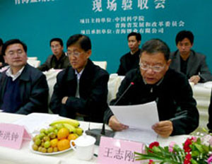 高技術(shù)產(chǎn)業(yè)化示范工程現(xiàn)場(chǎng)驗(yàn)收會(huì)在西寧召開(kāi)。會(huì)議由中國(guó)科學(xué)院計(jì)劃局副局長(zhǎng)潘鋒主持,青海省人民政府副秘書(shū)長(zhǎng)鐘通蛟,中國(guó)科學(xué)院基本建設(shè)局副局長(zhǎng)王志剛,中國(guó)科學(xué)院蘭州分院副院長(zhǎng)楊生榮,青海省海西州人民政府副州長(zhǎng)劉小秦,西部礦業(yè)集團(tuán)公司總裁白永強(qiáng),青海鹽湖研究所所長(zhǎng)馬海州、黨委書(shū)記胡彥明和來(lái)自中國(guó)科學(xué)院、青海省政府、海西州政府及各相關(guān)單位的四十多位代表參加了會(huì)議。