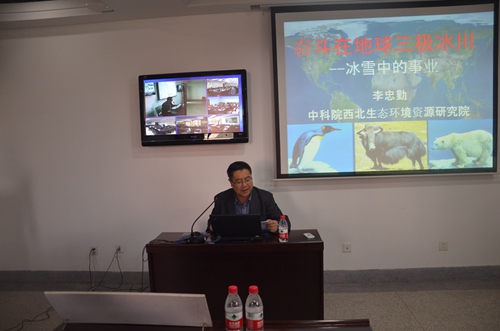 李忠勤結(jié)合自己在高寒極端環(huán)境無(wú)私奉獻(xiàn)30年的難忘工作經(jīng)歷,為與會(huì)人員深情講述了他《奮斗在地球三極冰川》的感人故事。他的報(bào)告分“北極科學(xué)考察介紹”、“走進(jìn)南極”和“中國(guó)冰川定位觀測(cè)”三個(gè)部分,通過(guò)普及地球三極(南極、北極和青藏高原)知識(shí)、梳理回顧世界及中國(guó)冰川科考?xì)v史、介紹中國(guó)冰川科考站情況及科考隊(duì)感人事跡,為大家作了一場(chǎng)生動(dòng)、感人的報(bào)告,一幅幅珍貴難得的實(shí)地照片再現(xiàn)了冰川科考工作的極端艱辛,一句句深情感人的樸實(shí)語(yǔ)言展示了共產(chǎn)黨人無(wú)私奉獻(xiàn)的政治品格。同時(shí),他強(qiáng)調(diào)指出,他所在的科研團(tuán)隊(duì)結(jié)合冰凍圈科學(xué)研究以野外工作為基礎(chǔ),具有人員分散、工作辛苦等特點(diǎn)的實(shí)際,制定了以黨小組為單元,研究室支部、所黨委聯(lián)動(dòng)的“兩學(xué)一做”方案,以科研工作為載體和抓手,深入扎實(shí)推進(jìn)“兩學(xué)一做”學(xué)習(xí)教育,取得了良好效果,發(fā)揮了黨支部是戰(zhàn)斗堡壘作用。他的報(bào)告圖文并茂,真實(shí)感人,既是一場(chǎng)科普?qǐng)?bào)告,更是一場(chǎng)生動(dòng)黨課,受到與會(huì)人員歡迎和好評(píng)。